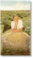 Om Barstenen berettes endvidere: ”Paa Skraaningen af Dybbølbjærg ligger en stor Sten, Barsten. Der boede engang paa Fyn en Jættekvinde, som ærgrede sig over de mange Kirker, der blev bygget rundt om i Landet. Fra de høje Bakke, hvor hun boede, kunde hun se over til Sundeved. Dær fik hun en skøn Dag Øje paa en stor Bygning, som blev rejst på Broager Bjærg. Da der kom to Taarne paa den, troede hun først, det var en Borg, og det tog hun sig ikke saa nær. Men en Formiddag lød der Klokkeklang derovre fra. Da tog Jættekvinden sit Strømpebaand og bandt en vældig Sten deri, som hun slyngede over mod Broager Kirke. Men Baandet brast, idet hun svang den vældige sten, saa de kom ikke helt over. Stenen faldt ned på Dybbøl Mark, og her ligger den endnu i Dag”. Fotoet blev taget 29. august 2009 under en familietur til Sønderjylland; mine fire børn med tilhørende svigerbørn befolkede Barstenen.